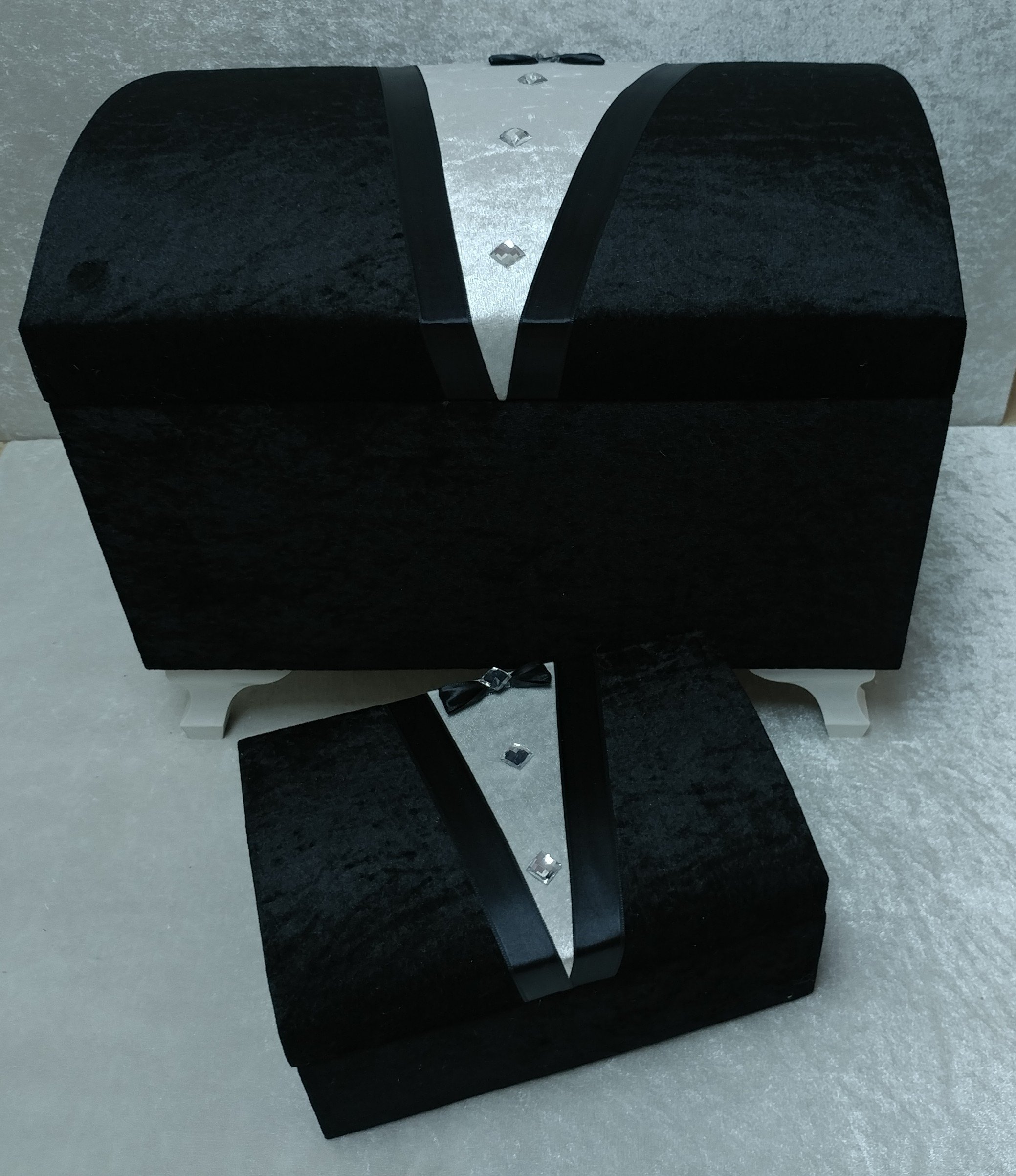 SANDIK ÖZELLİKLERİ-Sandığın dış kısmı kadife kumaş ile kaplanmıştır.-Sandığın iç kısmı saten kumaş ile kaplanmıştır.-Ekstra Dayanıklı Ahşap Malzeme-Sandık içerisinde 4 ad. beyaz ayak ve 16 ad.vida mevcuttur.SANDIK EBATLARI-Küçük Sandık EN:20 cm BOY:30 cm YÜKSEKLİK:30 cm-Büyük Sandık EN:35 cm BOY:50 cm Yükseklik:30 cm 2 YIL ÇEYİZ STORE GARANTİLİDİR.